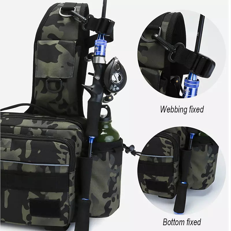 Väskan är tillverkad av robust och vattenavvisande Oxford-tyg, vilket gör den idealisk för olika fiskeäventyr. Den kan användas som handväska, axelväska, korsväska eller bältesväska, vilket ger dig flexibilitet och stil oavsett tillfälle.