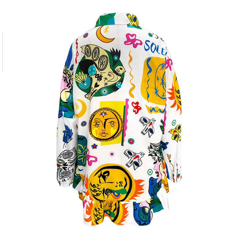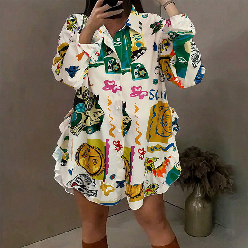 Kvinnors Skjortablusklänning med Färgglada Tryck