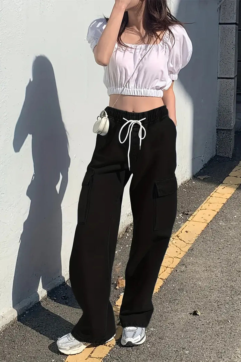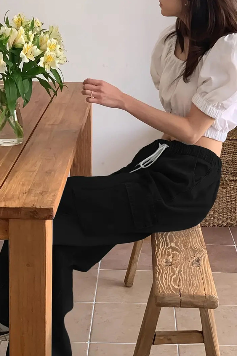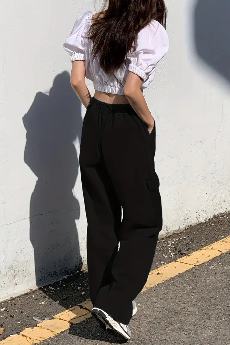 Snygga Byxor Dam Hög Midja Avslappnad Bred Ben Bomull