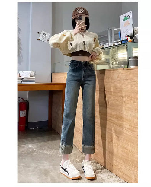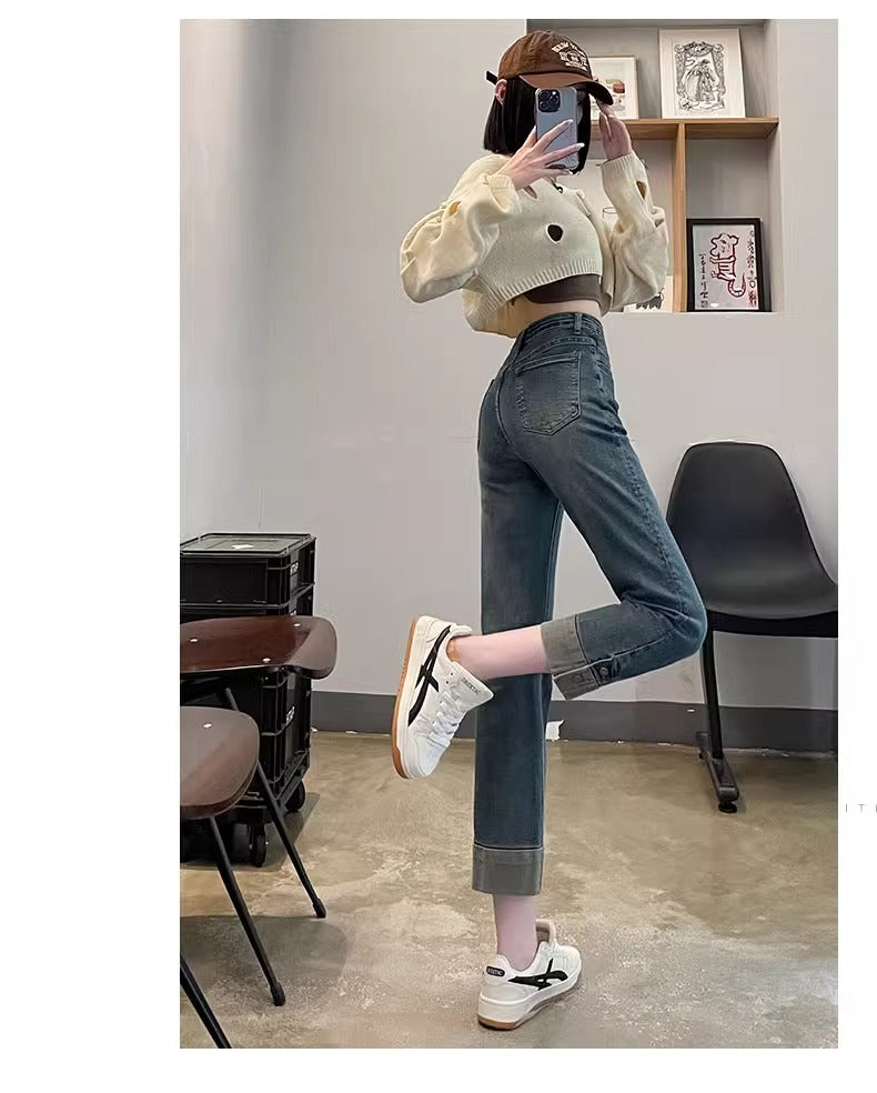 Dessa fleecefodrade denimbyxor kombinerar stil och värme, vilket gör dem till det perfekta valet under kalla månader. Med en modern design och en hög midja ger de både komfort och en trendig look.