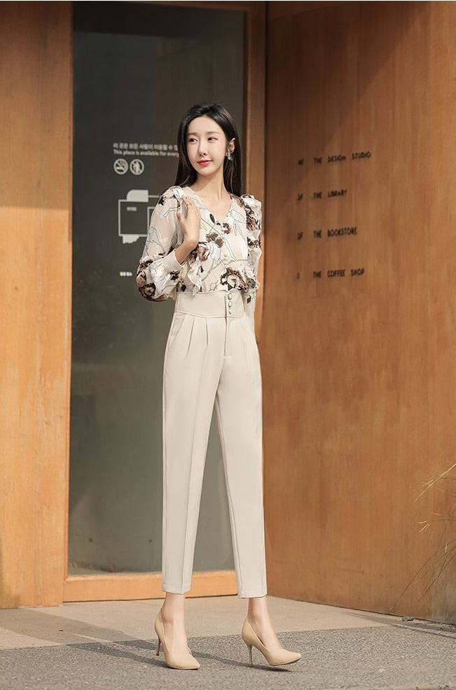 Snygga Byxor Dam Hög Midja Siden Polyester