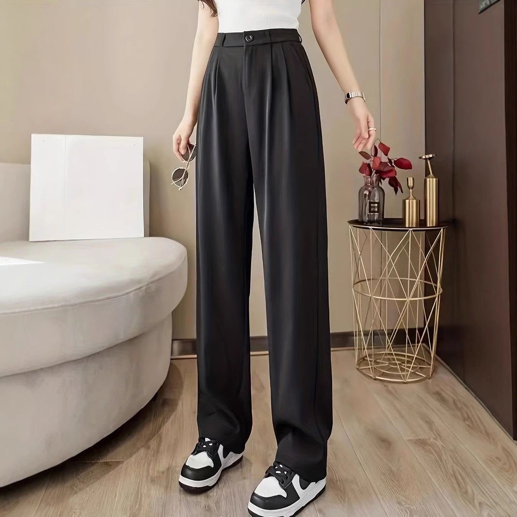 Designade med en medelmidja och en lätt elastisk passform, dessa byxor är både bekväma och stiliga. De enfärgade byxorna är mångsidiga och kan enkelt kombineras med olika toppar för att skapa en komplett look.