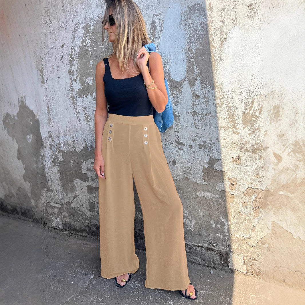 Designen är inspirerad av en elegant pendelstil, vilket ger en modern och avslappnad look. De långa byxorna är perfekta för både vardag och mer avslappnade tillställningar, vilket gör dem till en mångsidig del av din garderob.