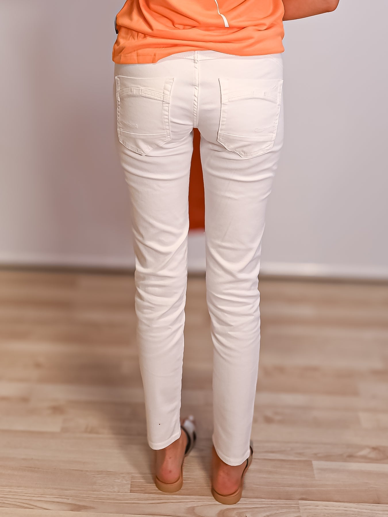 Med en modern och trendig design är dessa byxor idealiska för både vardagligt bruk och mer avslappnade tillfällen. Den coola begagnade looken och de högkvalitativa detaljerna, såsom den extra dragkedjan och nitarna på fickorna, gör dem till ett måste i din garderob.