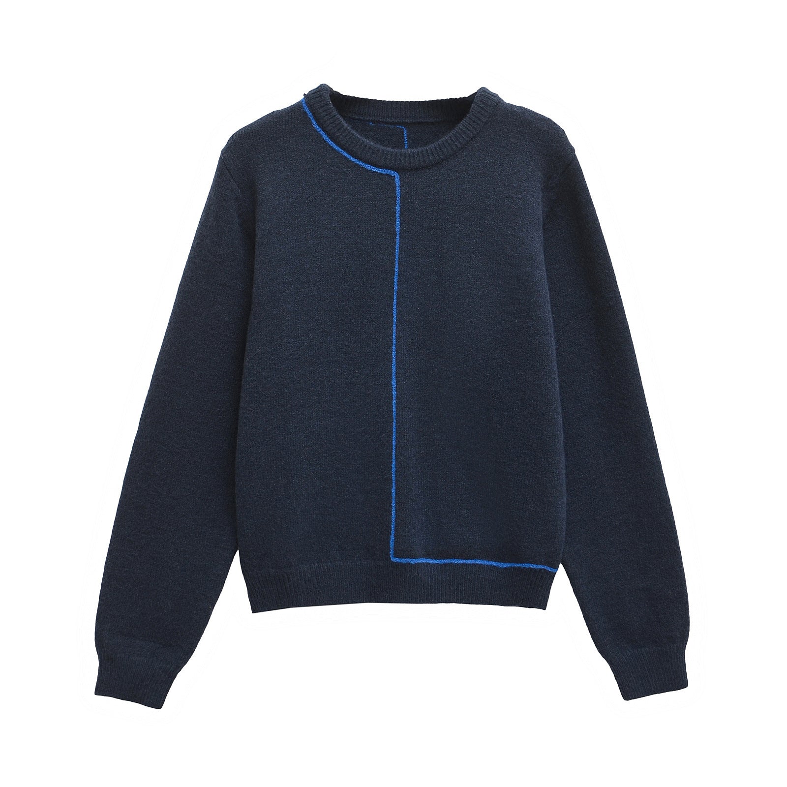Tröjan är tillverkad av en mjuk och andningsbar bomullsblandning, vilket gör den idealisk för alla säsonger. Den unika designen med färgaccenter längs sömmen ger en fräsch känsla till din outfit och passar perfekt för både avslappnade och mer formella tillfällen.