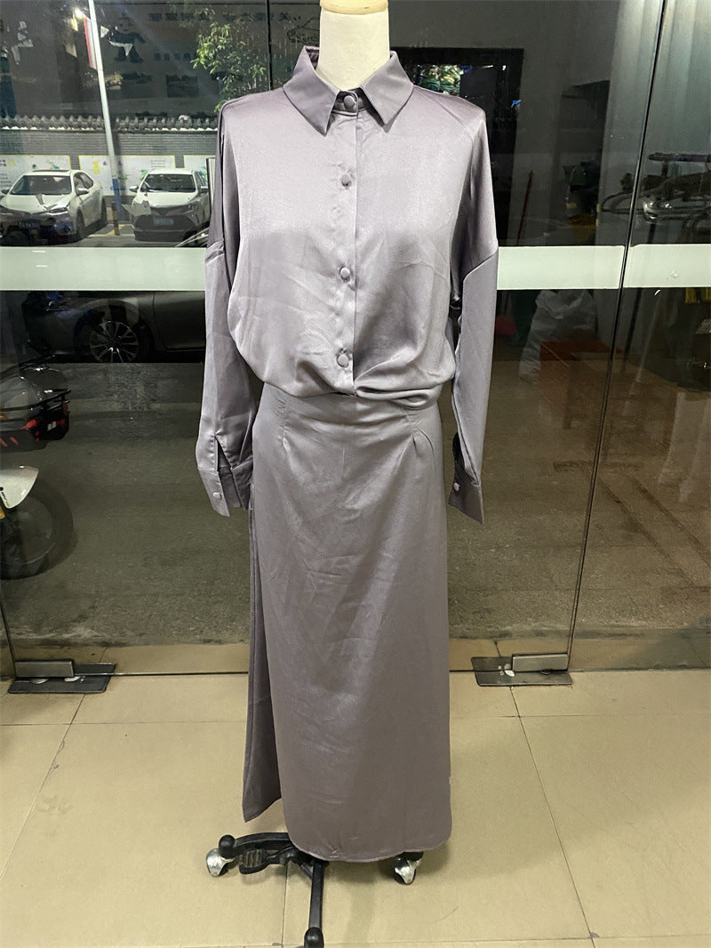 Upplev en tidlös stil med detta eleganta tvådelade set som kombinerar en skjorta och en A-linjeformad kjol. Perfekt för både vardag och fest, kommer detta set att få dig att känna dig självsäker och chic.