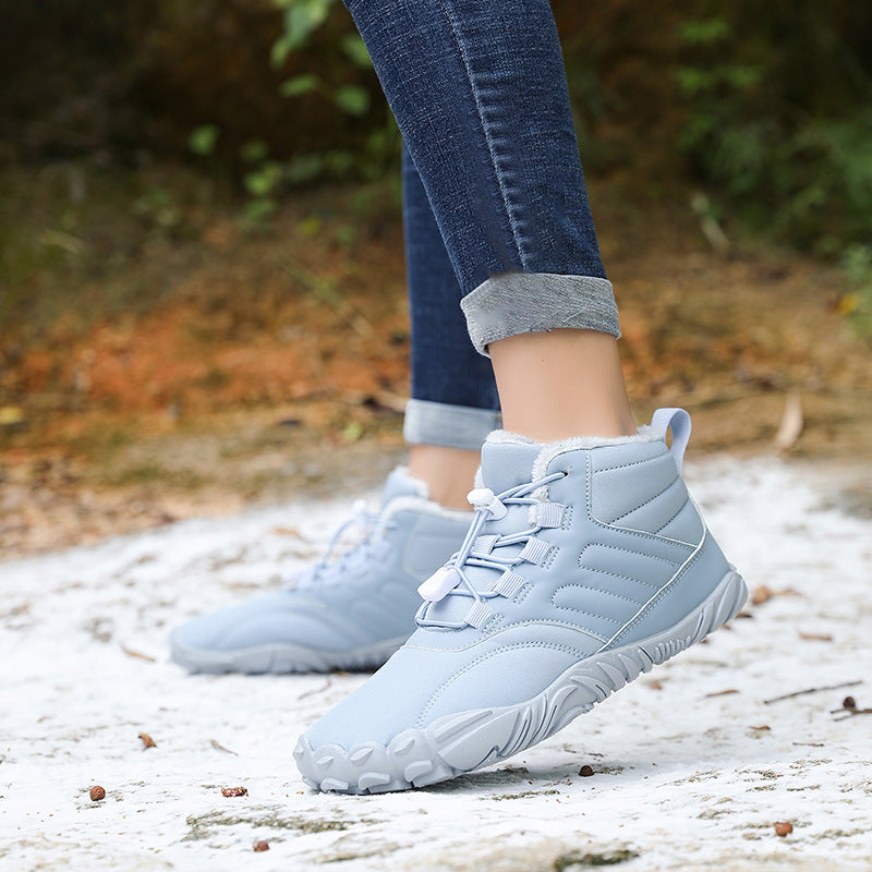 Dessa skor kombinerar stil och prestanda med en hög fotled för extra stöd. Tillverkade av exklusivt gummi, är de idealiska för kalla och blöta förhållanden, vilket gör att dina fötter förblir varma och torra under hela ditt äventyr.