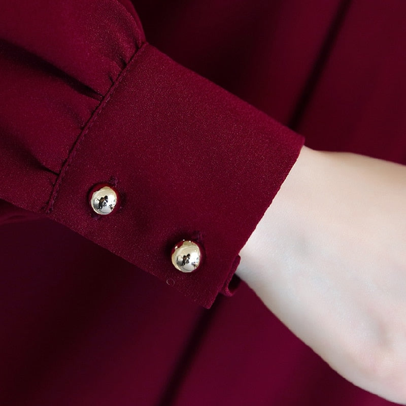 Denna blus är en perfekt kombination av stil och komfort, vilket gör att du känner dig självsäker och elegant oavsett tillfälle. Chiffonmaterialet ger en lätt och luftig känsla som är idealisk för både formella och avslappnade sammanhang.