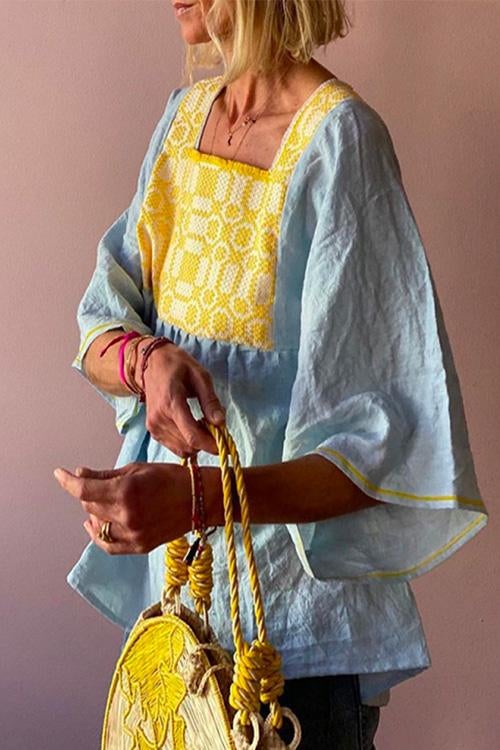 Denna blus har en modern skarvklocka ärm som ger en elegant touch. Den är mångsidig nog att stylas för både vardag och fest, vilket gör den till ett utmärkt val för alla säsonger.