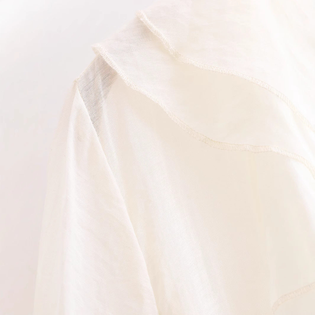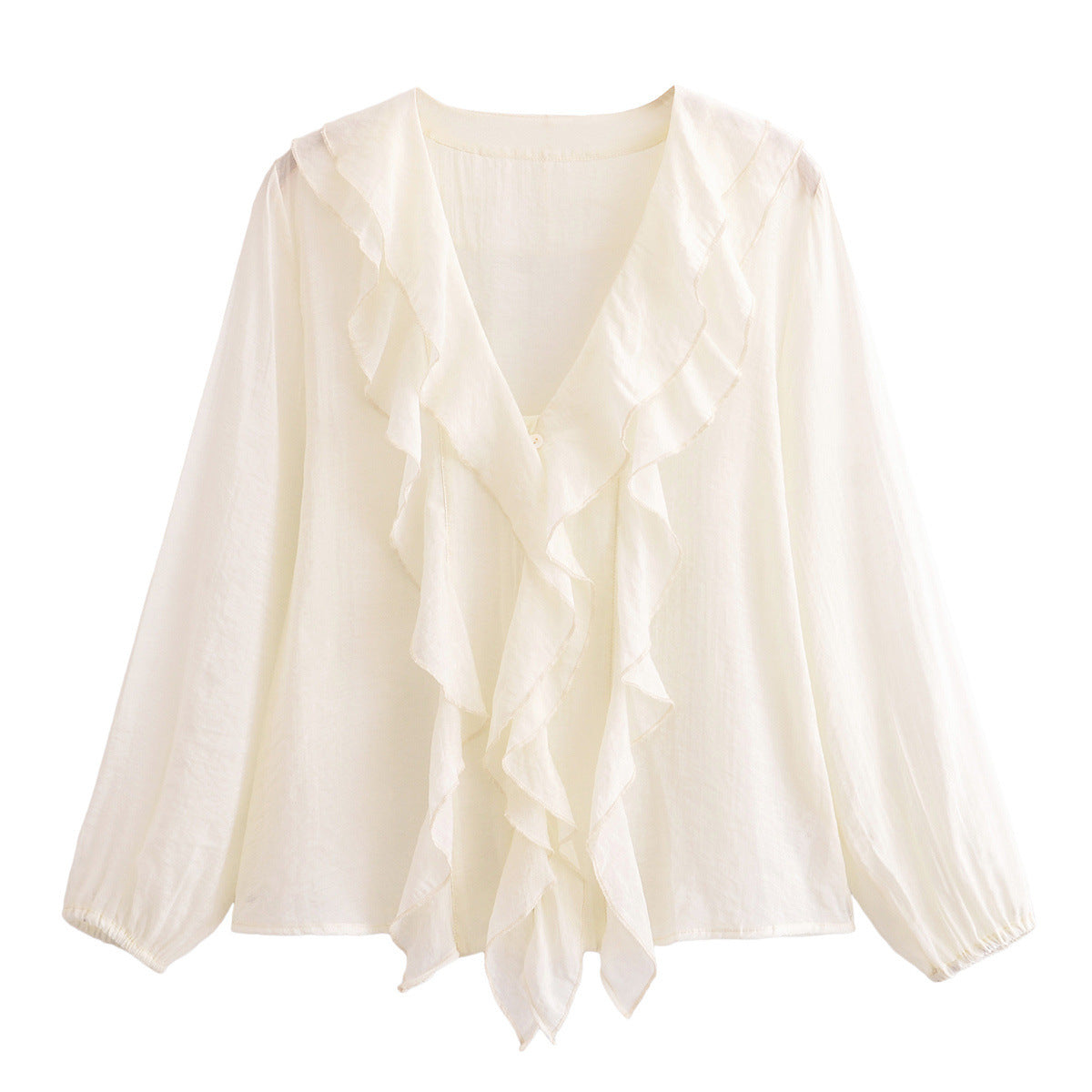 Vit Skjorta Dam Skiktad V-ringad Polyester Långärmad